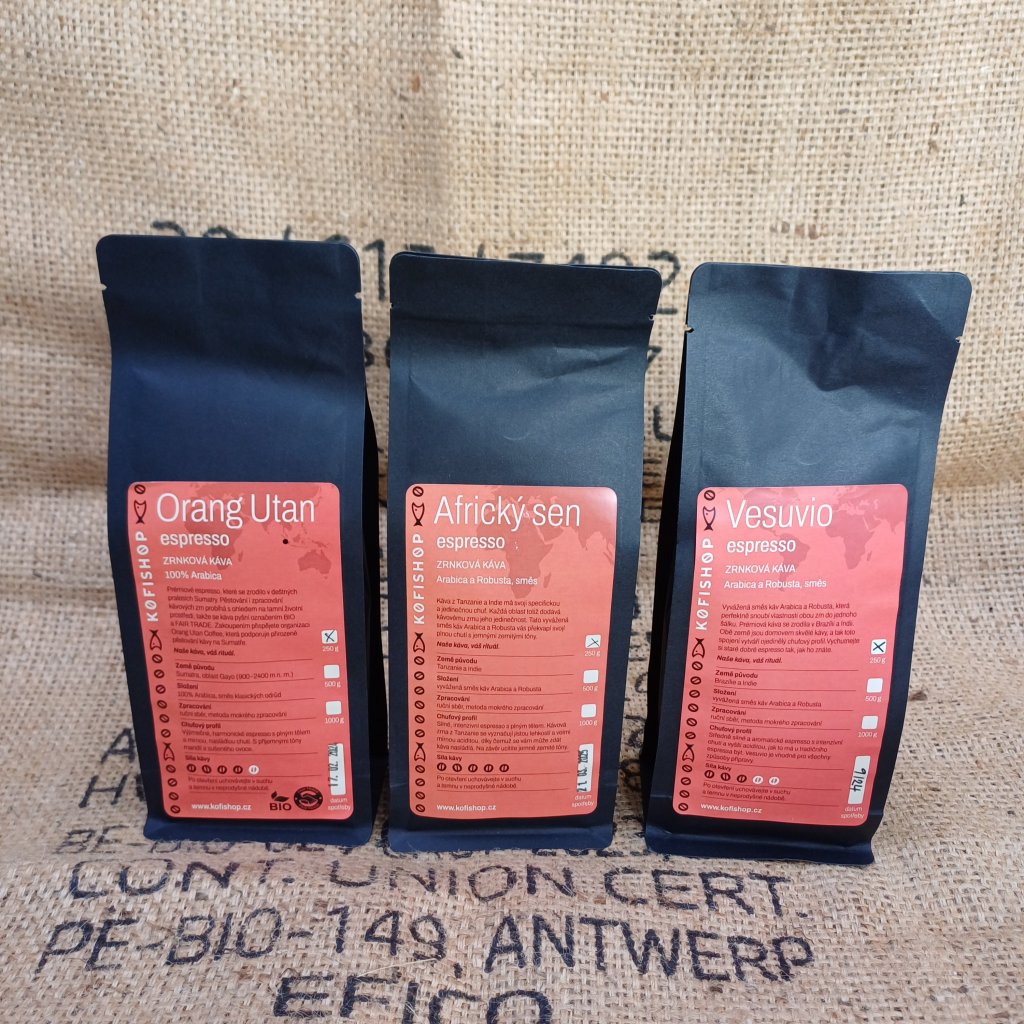 Pokud hledáte zrnkovou kávu k přípravě klasického espressa, tak pro vás máme výhodný balíček, který obsahuje tři espresso směsi, které se liší svým původem a hlavně intenzitou.