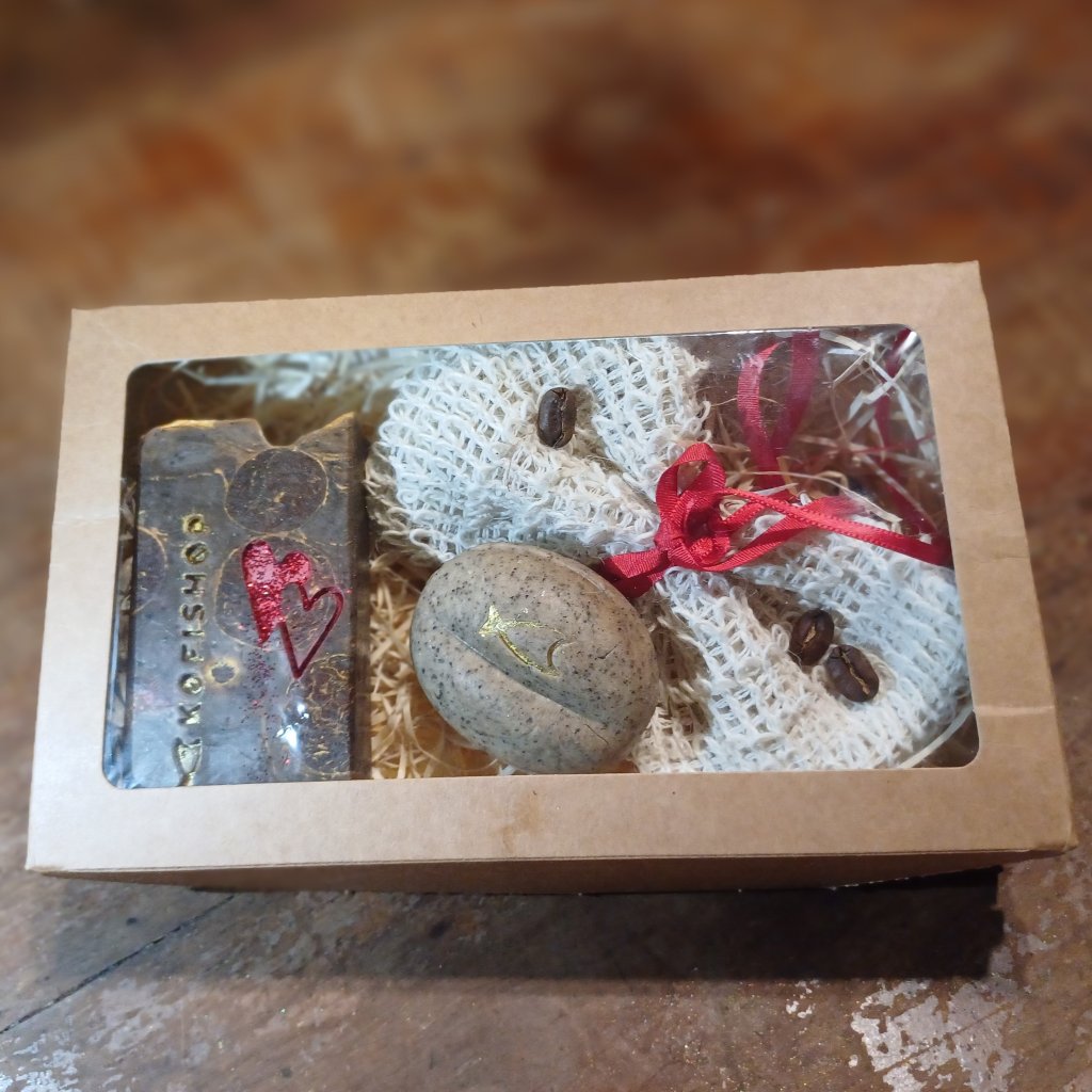 Dárkové balení obsahuje: 1x tělové mýdlo cca 100 g, 1x obličejové mýdlo cca 50 g, 1x přírodní síťka na mýdlo (materiál sisal).