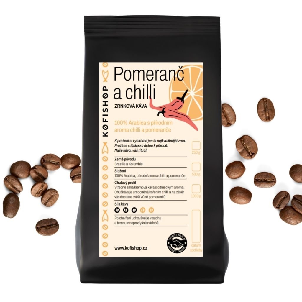 Pomeranč a chilli zrnková aroma káva KOFISHOP